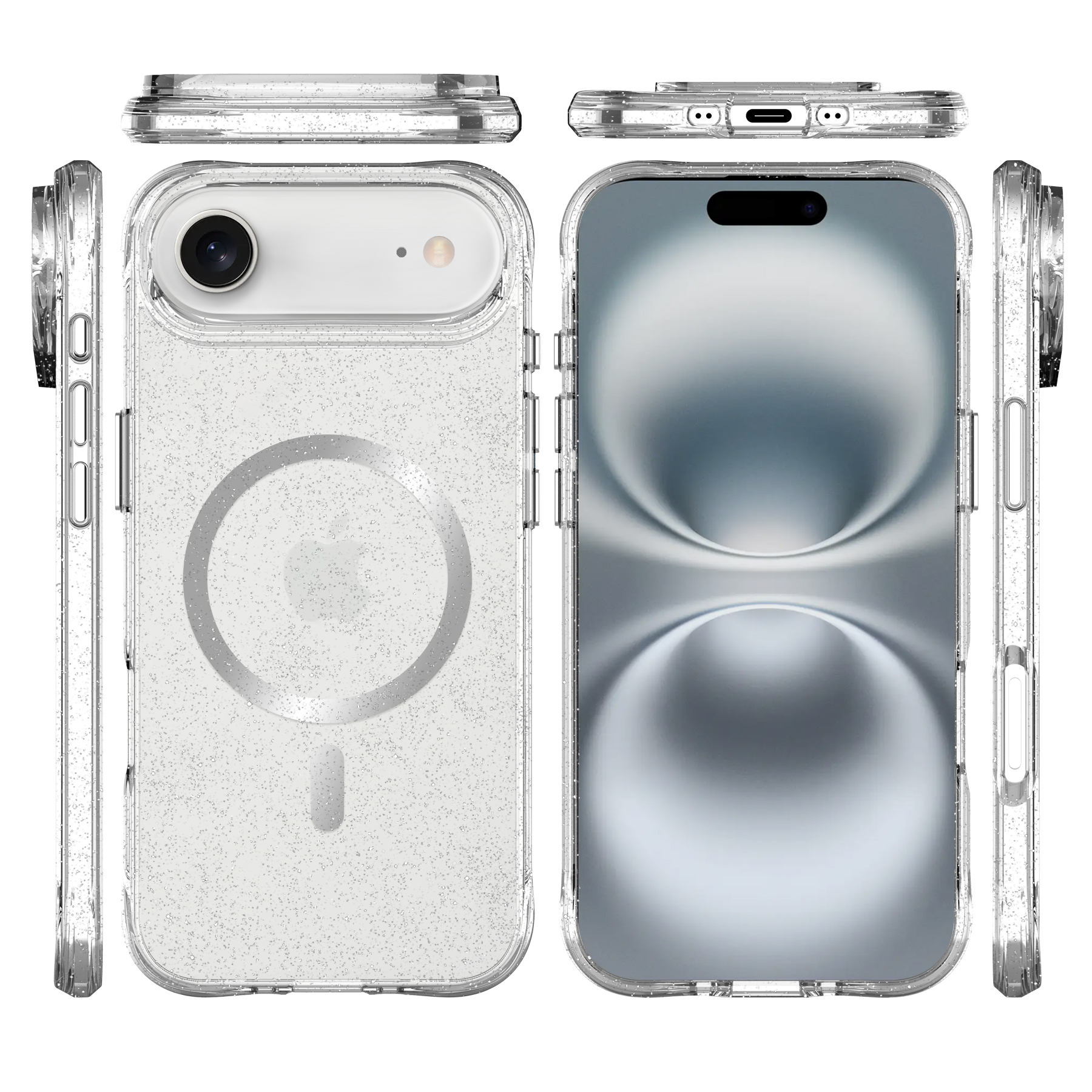 • Lightweight design with a smooth TPU material with a glitter detail.
